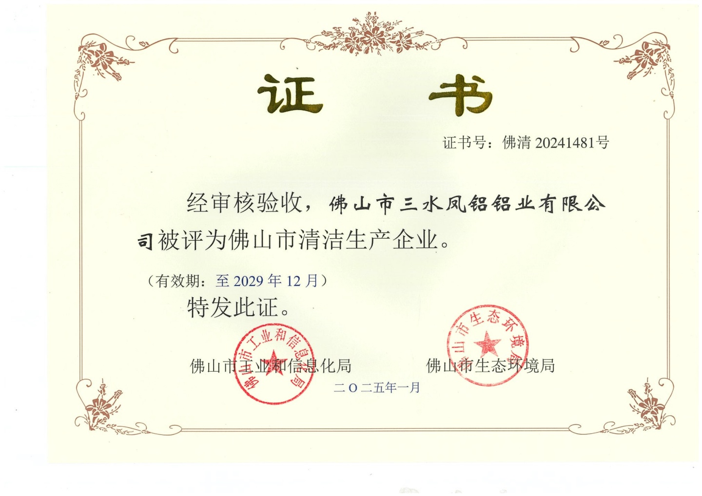 廣東省名優高新技術産品証書(大斷麪高強度工業鋁合金型)
